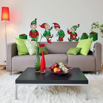 Christmas Elves PVC Vinyl Removable Art Wall Sticker Decal Kit Home Decor.Christmas elves wall sticker decal kit. Everyone can use a little help this time of the year so grab these elves and add a little spirit to your wall.Made from heavy duty vinyl. Featuring our standard 5 year warranty. This measures: Elf 2 - 10In X 20.75InElf 3 - 14.75In X 16.5In. Elf 4 - 14.7In X 18.6In. Presents - Range In Size From 7.4In To 11.4In.