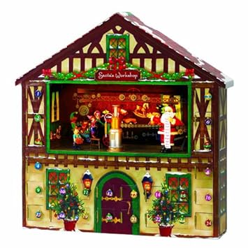 - Santa's workshop comes to life with music and animation as the doors open to this advent calendar once each day 24-day