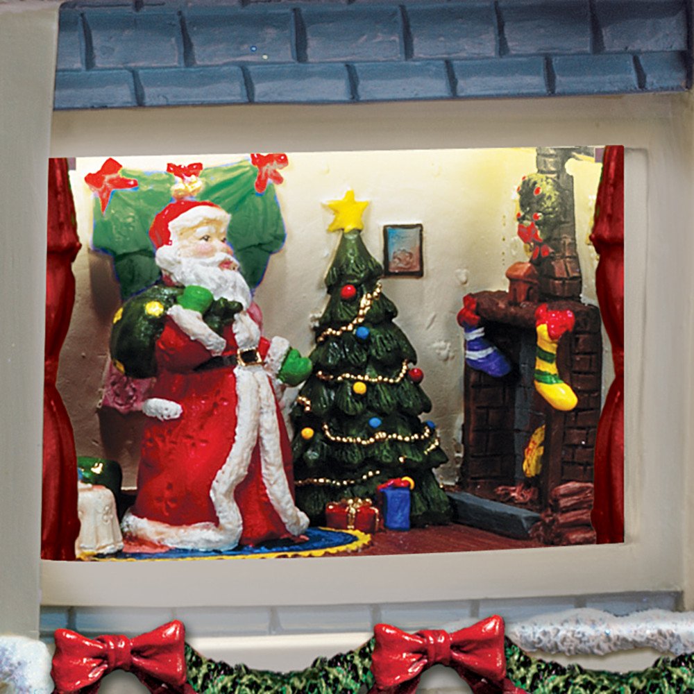 Thomas Kinkade Christmas Story House Features Kinkade's Narration of Classic Holiday Tale! Exclusive Christmas Decoration! For the first time ever, watch and listen as every meticulously detailed room in this extraordinary Thomas Kinkade Christmas story house comes to life with light and sound!  Thomas Kinkade narrates the beloved "Twas The Night Before Christmas" poem, and as the story progresses each room in this glorious snow-draped Victorian story house fills with light, revealing handcrafted and hand painted scenes and figurines!  Look, there's Santa in the parlor, and his reindeer and sleigh are waiting on the roof!  You'll love watching the rapt expressions of your family and friends as they experience this exclusive limited edition Thomas Kinkade Christmas decor, "The Night Before Christmas," from Hawthorne Village.  It's destined to become a treasured Christmas decoration, an heirloom to bring lasting joy throughout the years.  Strong demand is expected for the holidays, order now!