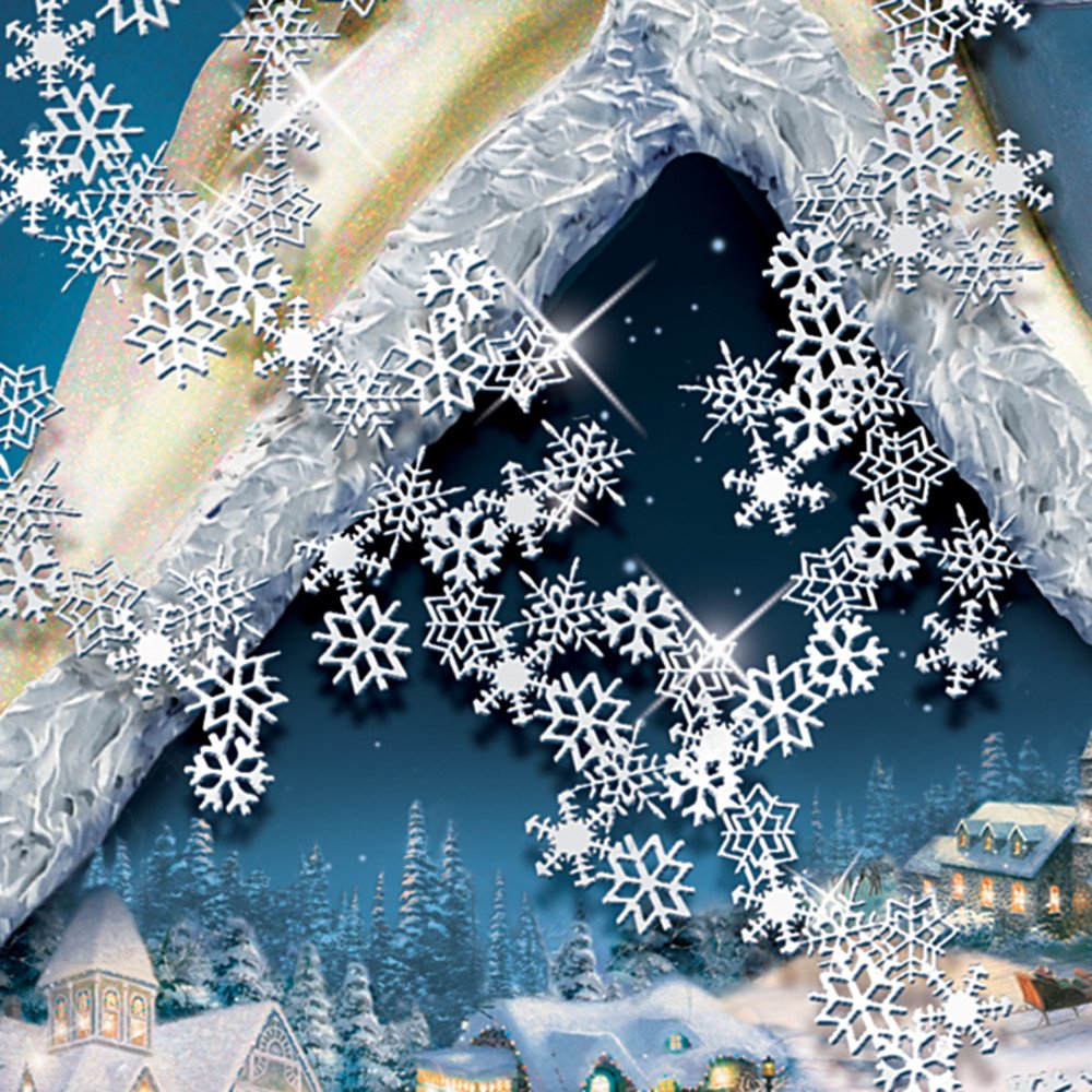 - First ever Santa Claus Christmas decor to blend Thomas Kinkade's holiday artwork with festive music, LED Illumination and intricate laser-cut snow flakes, exclusively from The Bradford Exchange